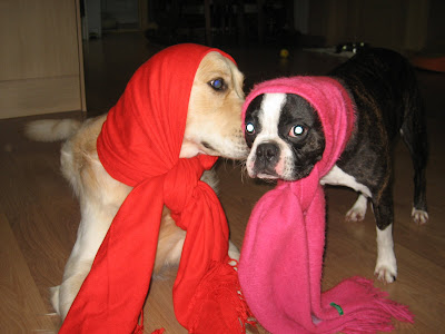 It is mandatory for dogs who come to our doghouse to 'accessorise'. Gus was not spared this fate. The end result was not too bad - we carried it off well!